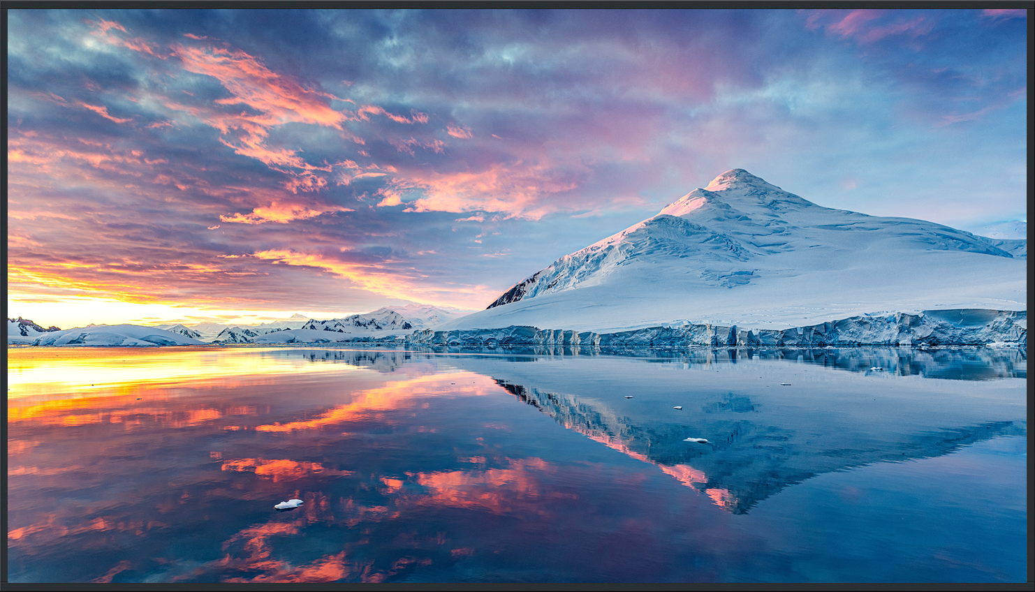With approximately 8,290,000 pixels, about four times the pixels of a Full-HD display, images are highly detailed. This dynamic, large-screen display archives true-to-life finely nuanced images. The 4K display is an excellent choice for digital signage and meeting rooms.