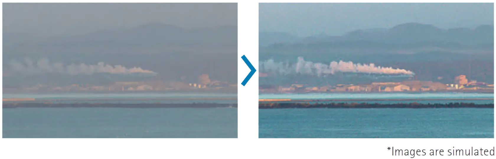 - Fonction de réduction de la brume : permet de réduire la brume à l’image et de voir plus facilement les sujets peu contrastés. L'intensité de l'effet peut être réglée manuellement en fonction de l'épaisseur du brouillard.