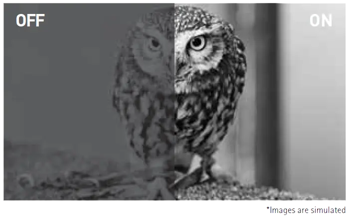 - Fonction hybride de réduction du bruit numérique (Hybrid DNR) : deux types de réduction du bruit, 2D et 3D, sont utilisés conjointement afin d’assurer la clarté de l’image dans une grande variété de conditions lumineuses avec un niveau minimal de flou de rémanence ou dégradation de l’image