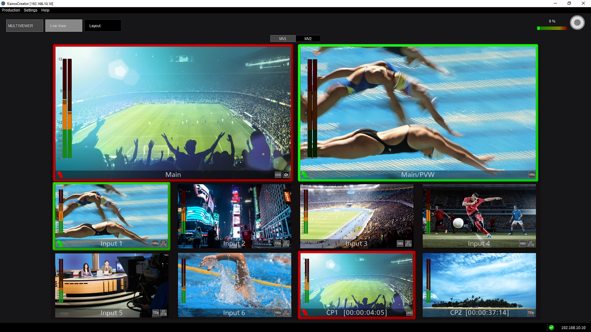 KAIROS removes input restriction to be connected to a system and realize more efficient use of ST 2110 network and other inputs such as Deltacast, NDI®, SRT and other streaming inputs.