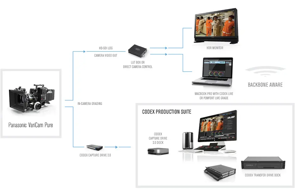 The Panasonic VariCam Pure outputs RAW files to Codex’s ultra-reliable Capture Drives. And that’s just the gateway to a complete dailies, review and archiving system with Codex’s Production Suite. One workflow, no matter which camera you choose, you won’t need anything else.