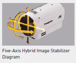 Five-Axis Hybrid Image Stabilizer (HD): In HD mode, electronic image stabilization is added to the optical image stabilizer (OIS) system to detect and correct motions on five axes, including rolling motion.