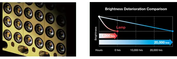 | Long lasting laser light source and low-maintenance design provide high brightness and superb image quality |