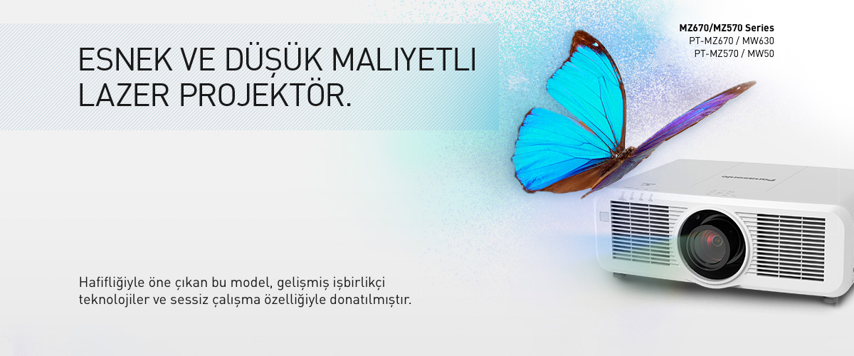 MZ670 serisinin esnek kurulum seçenekleri sayesinde, bu serinin projektörleri büyüklüğü ne olursa olsun tüm sınıflarda ve toplantı odalarında kullanılabilir. Değiştirilebilen lensleri sayesinde (PT-EZ770 serisi lenslerle uyumlu) aynı projektör hem küçük hem de büyük odalarda kullanılabilir.